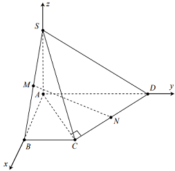 + Đặt hệ trục tọa độ, xác định tọa độ các điểm \(M,\,\,N,\,\,S,\,\,A,\,\,C\).