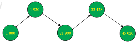 Điền số 1000; 1920; 45 020; 33428; 21 900 vào các hình tròn theo thứ tự tăng dần từ trái qua