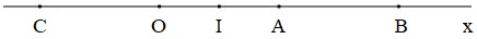 c) Trên tia đối của tia \(Ox\) lấy điểm \(C\) sao cho \(OC = 2cm\); gọi \(I\) là trung điểm của \(OA\). Chứng tỏ rằng điểm \(I\) là trung điểm của \(BC\).