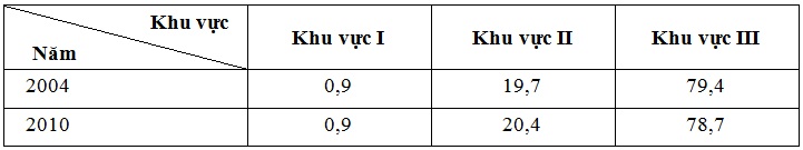 Cho bảng số liệu: CƠ CẤU GDP THEO KHU VỰC KINH TẾ CỦA HOA KÌ NĂM 2004 VÀ 2010 (Đơn vị: %) Vẽ