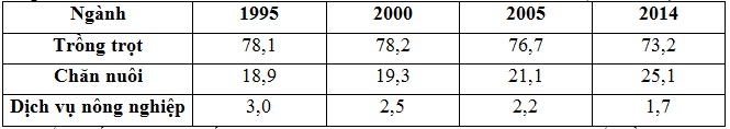 Cho bảng số liệu: CƠ CẤU GIÁ TRỊ SẢN XUẤT NÔNG NGHIỆP NƯỚC TA