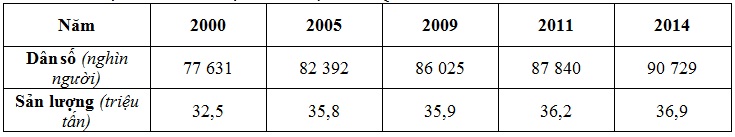 Cho bảng số liệu: DÂN SỐ VÀ SẢN LƯỢNG LƯƠNG THỰC CỦA VIỆT NAM QUA CÁC NĂM Dựa vào bảng