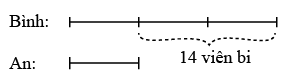 Tìm hiệu số bi của Bình và An. Sau đó vẽ sơ đồ đoạn thẳng biểu thị số bi của Bình và số bi của An lúc đầu. Từ đấy tìm được số bi của An và số bi của Bình dễ dàng.