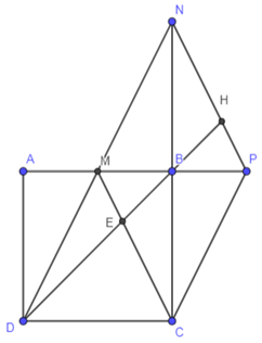 Cho hình vuông \(ABCD,\,\,M\) là trung điểm của AB. Gọi P là điểm đối xứng với M qua B, N là
