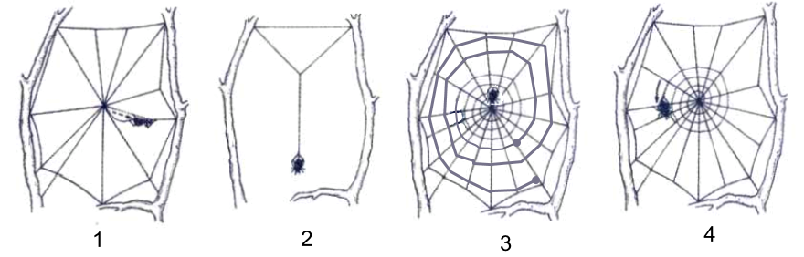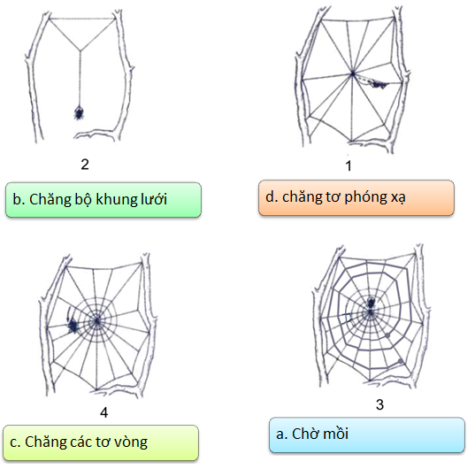Dưới đây là các giai đoạn của quá trình chăng lưới ở nhện và mô tả các quá trình: Hãy