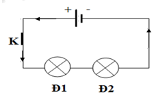 Cho trước: Nguồn điện (1 pin), 2 bóng đèn Đ1 và Đ2 mắc nối tiếp, công tắc đóng, dây dẫn.