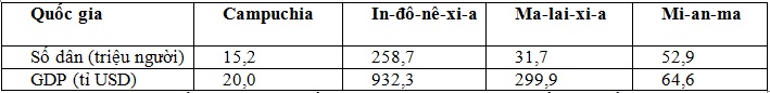 Cho bảng số liệu: SỐ DÂN VÀ GDP CỦA MỘT SỐ NƯỚC, NĂM