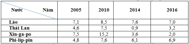 (Nguồn: Niên giám thống kê Việt Nam 2016, Nhà xuất bản thống kê 2017)