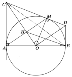 Cho đường tròn \(\left( {O;R} \right)\), đường kính \(AB.\) Qua \(A\) vẽ đường thẳng \(d\) là tiếp tuyến của đường tròn \(\left( {O;R} \right)\). \(C\) là một điểm thuộc đường thẳng \(d.\) Qua \(C\) vẽ tiếp tuyến thứ hai của đường tròn \(\left( {O;R} \right)\), tiếp xúc với đường tròn\(\left( {O;R} \right)\) tại điểm \(M.\) Gọi \(H\) là giao điểm của \(AM\) và \(OC.\)