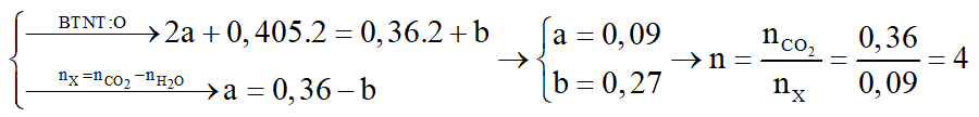 Gọi số mol H2O là b (mol) ; nCO2 = 15,84/44 = 0,36 (mol)