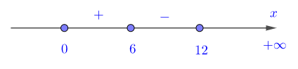 Hàm số \(y = {\log _{0,5}}\left( { - {x^2} + 12x} \right)\) đồng biến trên khoảng?