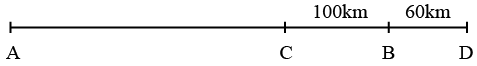 Khoảng cách từ C tới D là: \(100 + 60 = 160\left( {km} \right)\)