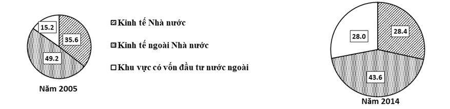 QUY MÔ, CƠ CẤU TỔNG SẢN PHẨM TRONG NƯỚC (GDP) PHÂN THEO THÀNH PHẦN KINH TẾ CỦA NƯỚC TA, NĂM 2005 VÀ 2014 (Đơn vị: %)