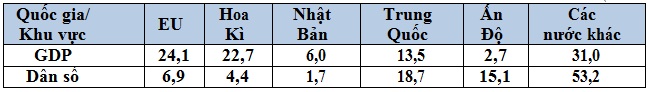 Tỉ trọng GDP, dân số của EU và các nước năm 2014