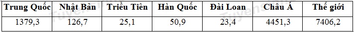 Cho bảng số liệu: Dân số các nước và vùng lãnh thổ Đông Á, châu Á và thế giới năm 2016