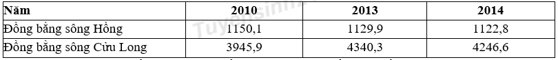 Cho bảng số liệu: DIỆN TÍCH LÚA CỦA ĐỒNG BẰNG SÔNG HỒNG VÀ ĐỒNG BẰNG SÔNG CỬU LONG (Đơn