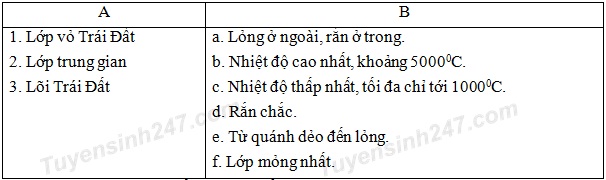 Ghép các ý 1, 2, 3 ở cột A với các ý a, b, c, d, e, f ở cột B cho phù