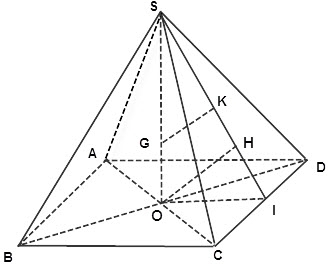 Cho hình chóp tứ giác đều S.ABCD có đáy ABCD là hình vuông cạnh a. Gọi G là trọng tâm ∆SAC và khoảng cách từ G đến mặt phẳng (SDC) bằng