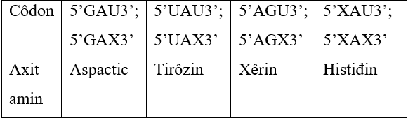 Cho biết các côdon mã hóa một số loại axit amin như sau:
