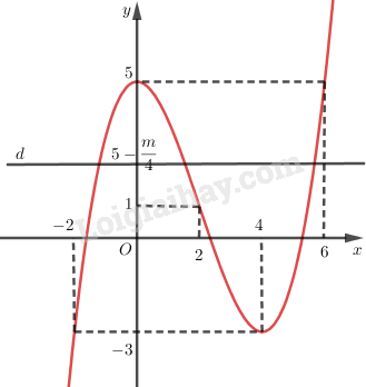 - Biến đổi phương trình về \(\dfrac{1}{4}{x^3} - \dfrac{3}{2}{x^2} + 5 = 5 - \dfrac{m}{4}\).