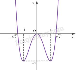 - Dựng đồ thị hàm số \(y = \left| {2{x^4} - 4{x^2}} \right|\) từ đồ thị hàm số đã vẽ ở ý a: