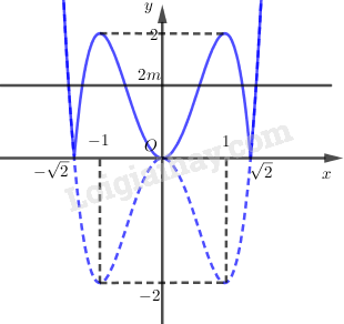 - Biến đổi phương trình đã cho về \(\left| {2{x^4} - 4{x^2}} \right| = 2m\).