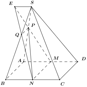 Cho hình chóp \(S.ABCD\) có đáy \(ABCD\) là hình bình hành. Lấy \(M,N\) lần lượt là trung điểm \(AD,BC.\) Lấy \(P\) thuộc cạnh \(SA.\)