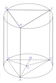 - Khối trụ ngoại tiếp lăng trụ tam giác đều có chiều cao bằng chiều cao của lăng trụ và đáy là đường tròn ngoại tiếp đáy lăng trụ.