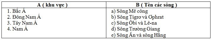 Ghép đôi ý ở cột A với cột B cho phù hợp, ghi vào bài thi ( Ví dụ 1a, 2b...
