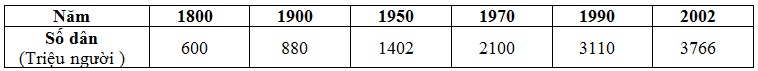 Dựa vào bảng số liệu dới đây hãy vẽ biểu đồ hình cột thể hiện sự gia tăng dân số
