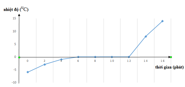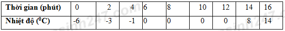 Bỏ vài cục nước đá lấy ra từ tủ lạnh vào một cốc thủy tinh rồi theo dõi nhiệt độ của nước đá, người ta lập được bảng sau: