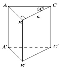 Cho hình lăng trụ đứng \(ABC.A'B'C'\) có đáy \(ABC\) là tam giác vuông tại B,\(BC = a,\widehat {ACB} =