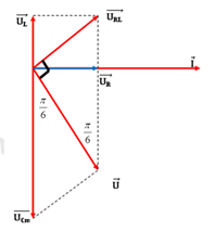 Cho đoạn mạch RLC mắc nối tiếp với C có thể thay đổi được. Khi điều chỉnh C để UCmax = 50 V và trễ pha \(\dfrac{\pi }{6}\) so với uAB. Tính UR và UL khi đó