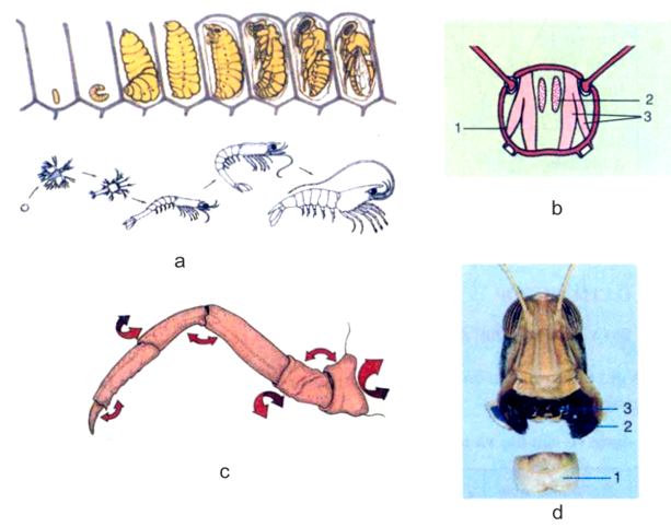 Quan sát các hình dưới đây, các hình nào thể hiện đặc điểm chung của động vật ngành Chân