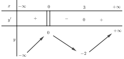 Quan sát bảng biến thiên và nhận xét các đáp án.