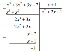 Cho đa thức \(M\left( x \right) = {x^3} + 3{x^2} + 3x - 2\) và đa thức \(N\left( x \right) = x + 1\)