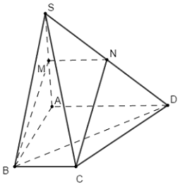 Cho hình chóp \(S.ABCD\) có đáy là hình thang đáy lớn \(AD\). Gọi \(M\) là trung điểm cạnh \(SA\). Gọi \(N\) là giao điểm của \(SD\) và \(mp\left( {BCM} \right)\). Khi đó khẳng định nào sau đây là sai ?