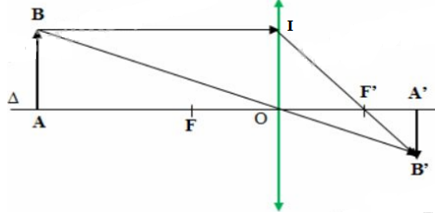 Hình vẽ dưới đây cho biết ∆ là trục chính của một thấu kính, AB là vật sáng, A’B’ là