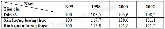 Dựa vào bảng số liệu sau: (Đơn vị: %)