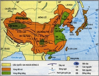 Dựa vào lược đồ tự nhiên khu vực Đông Á và kiến thức đã học, hãy cho biết: a) Các quốc