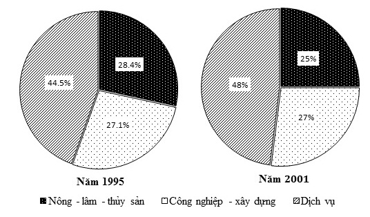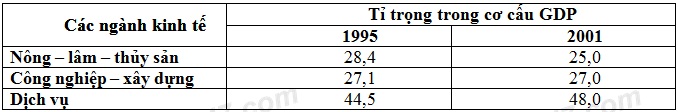 b) Nhận xét sự chuyển dịch cơ cấu các ngành kinh tế của Ấn Độ trong giai đoạn 1995 – 2001.