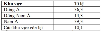 Bảng số liệu dân số các khu vực châu Á năm 2016. Đơn vị: %
