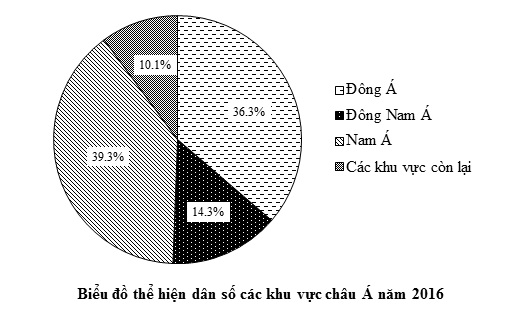 a) Vẽ biểu đồ hình tròn biểu hiện dân số các khu vực châu Á năm 2016.
