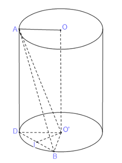Một hình trụ \(\left( T \right)\) có chiều cao bằng \(a\) và \(O,O'\) lần lượt là tâm của hai đáy. Hai điểm \(A\) và \(B\) lần lượt nằm trên hai đường tròn đáy sao cho \(AB = a\sqrt 3 \). Nếu khoảng cách giữa \(AB\) và \(OO'\) bằng \(\dfrac{{a\sqrt 2 }}{2}\) thì thể tích của khối trụ tạo nên bởi \(\left( T \right)\) là
