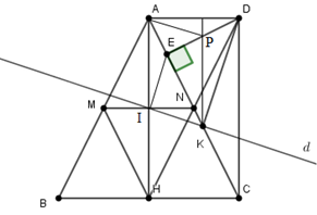 c) Lấy \(P\) là trung điểm cạnh \(EP.\) Gọi \(I\) là giao điểm của \(MN\) và \(AH.\) Ta sẽ chứng minh \(IK \bot DK\)