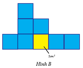 Quan sát hình vẽ, đếm số hình vuông \(1c{m^2}\) có trong hình vẽ. Số ô vuông chính là diện tích của hình B.