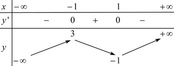 Vẽ bảng biến thiên của hàm số \(y = {x^3} - 3x + 1\).