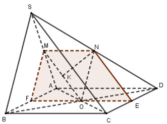 Cho hình chóp \(S.ABCD\) có đáy là hình bình hành \(ABCD\) với \(O\) là giao điểm hai đường chéo \(AC\) và \(BD.\) Gọi \(M,N\) lần lượt là trung điểm các cạnh \(SA\) và \(SD.\)
