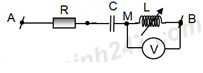 Giá trị vôn kế đạt cực đại: \({U_{L\max }} = \dfrac{{U\sqrt {{R^2} + {Z_C}^2} }}{R}\)