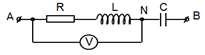 Cho mạch điện như hình vẽ với UAB = 300 V, UNB = 140 V, dòng điện i trễ pha so với uAB một góc φ (cos φ = 0,8), cuộn dây thuần cảm. Vôn kế V chỉ giá trị
